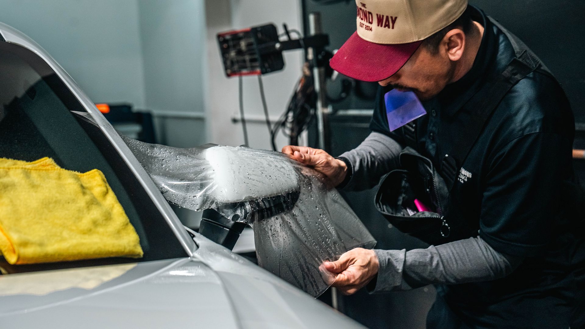 Paint protection film is a relatively thick transparent layer of urethane that’s applied on top of the body panels to protect the paint underneath.